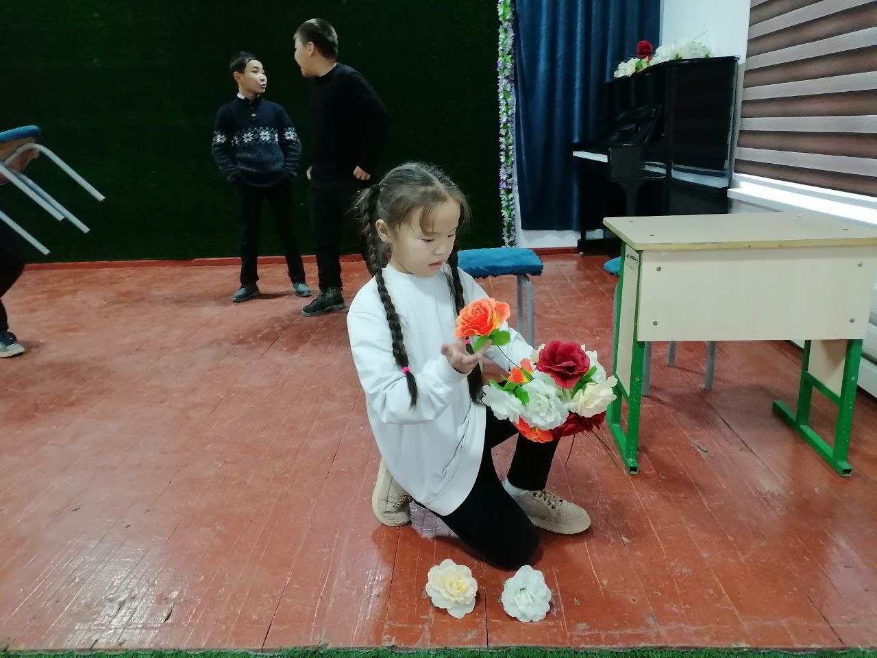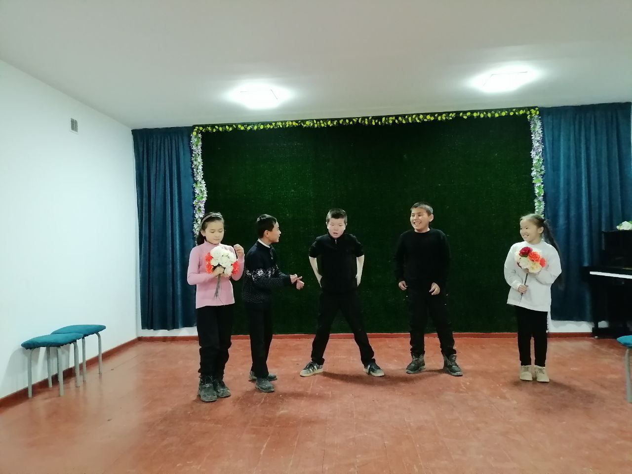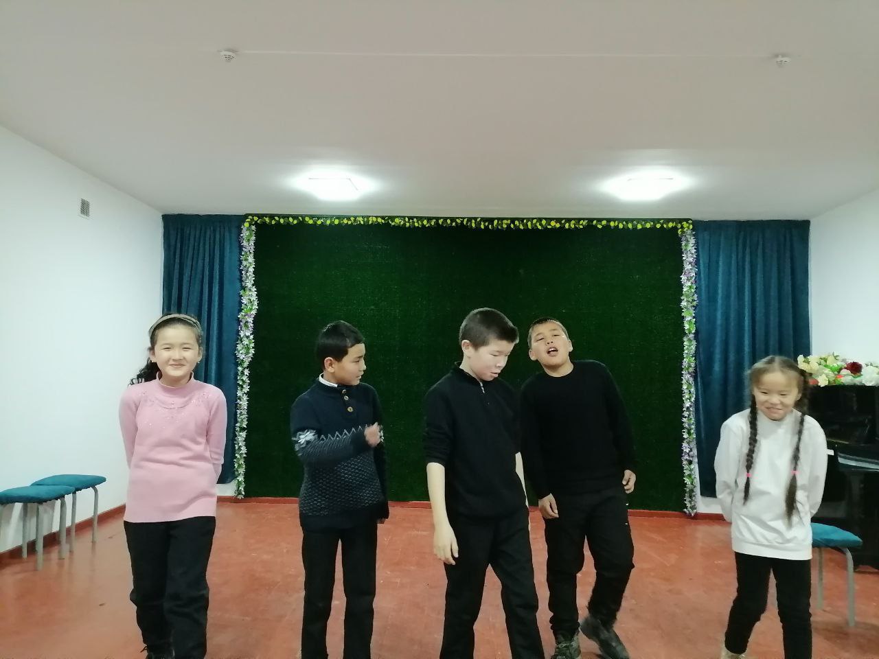 Búgin mektebimizdiń “Teatr óneri” bólimi oqiwshilari Jilliq is rejege muwapiq Kishi saxna kórinislerin tayyarlawdi úyrenbekte.
