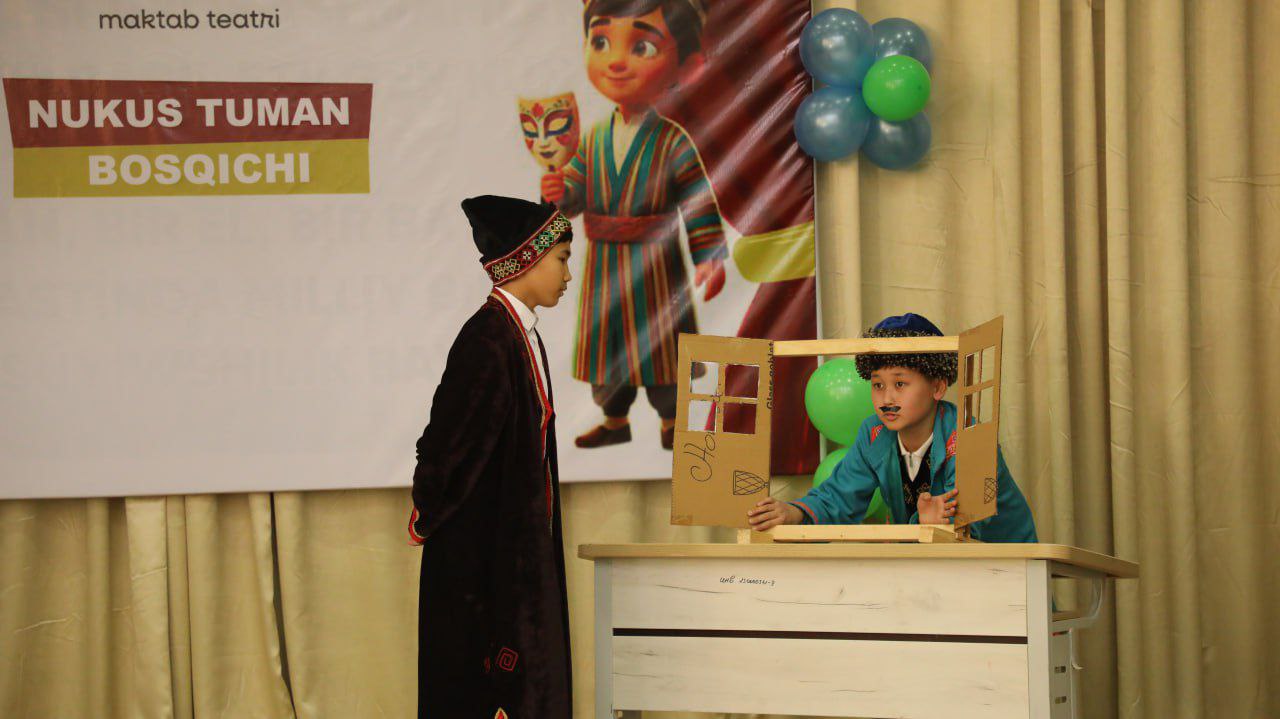 Búgin mektebimizde Orta mektepler arasinda Turan mektep teatri tańlawi Nókis rayoni basqishi bolip ótpekte.